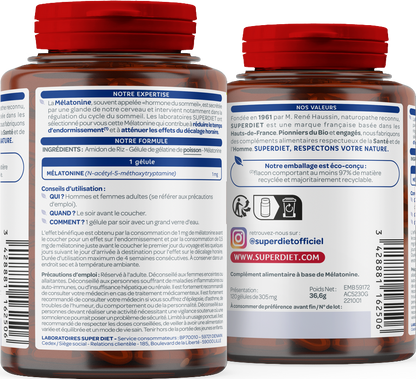 La Mélatonine, souvent appelé hormone du sommeil, est secrétée naturellement par votre cerveau et intervient notamment dans la régulation du cycle du sommeil.